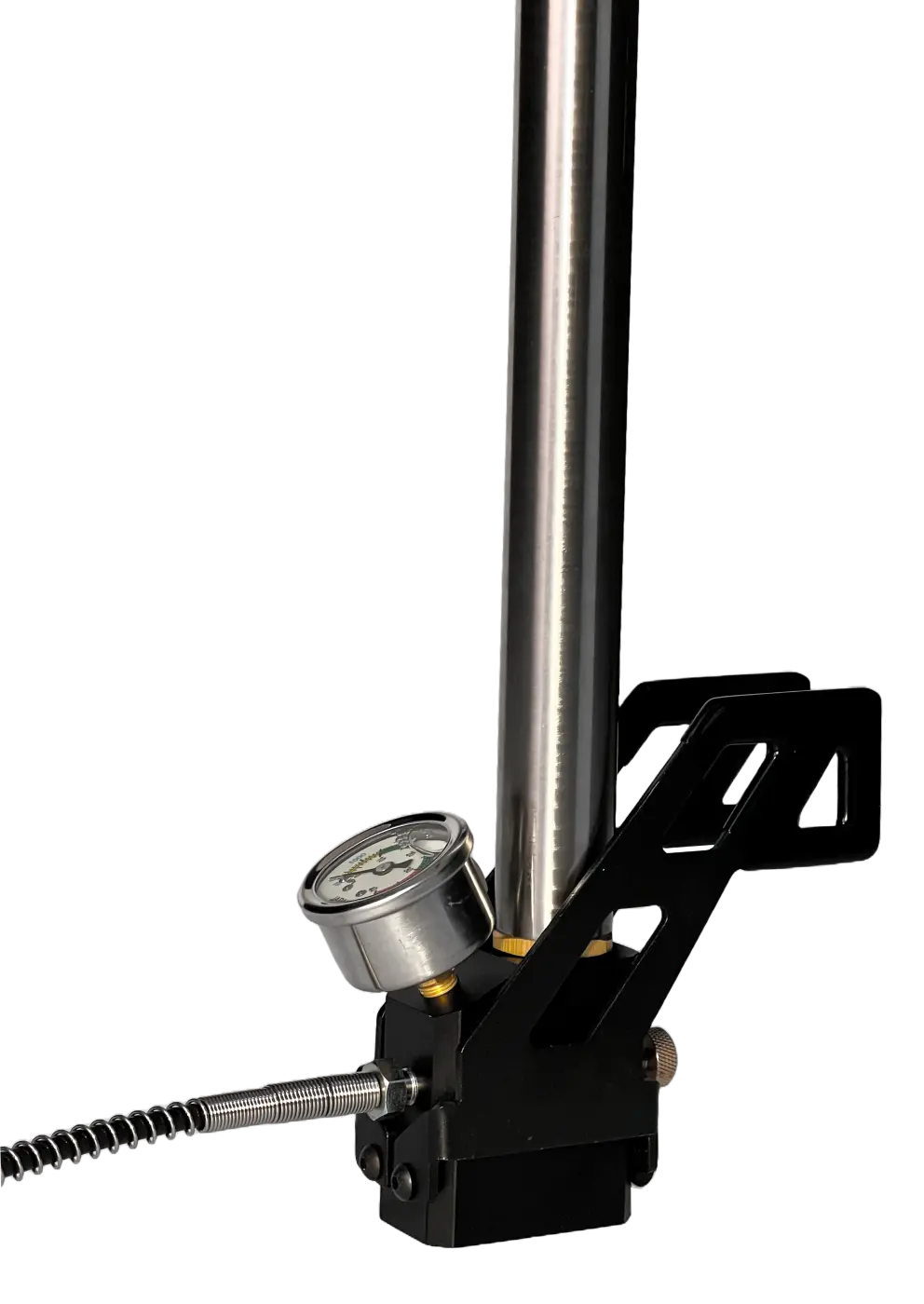 Manômetro Integrado: A bomba possui um manômetro integrado, permitindo que você acompanhe facilmente a pressão de enchimento e garanta que seu cilindro esteja sempre na pressão ideal para um desempenho máximo.