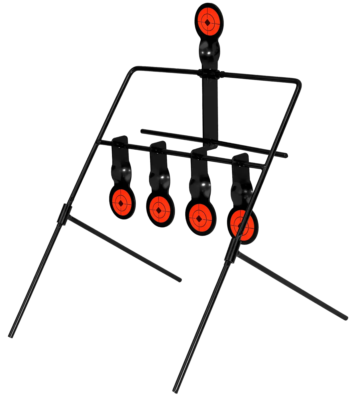 Ideal para treinos contínuos, o Alvo Auto Reset 5 Pêndulos é fabricado em aço resistente com tinta pulverizada de alta durabilidade. Seu mecanismo auto reset reinicia automaticamente o alvo superior ao acertar os quatro inferiores. Dobrável e compacto, possui pés pontiagudos e base reforçada, garantindo facilidade de transporte e estabilidade em qualquer solo.