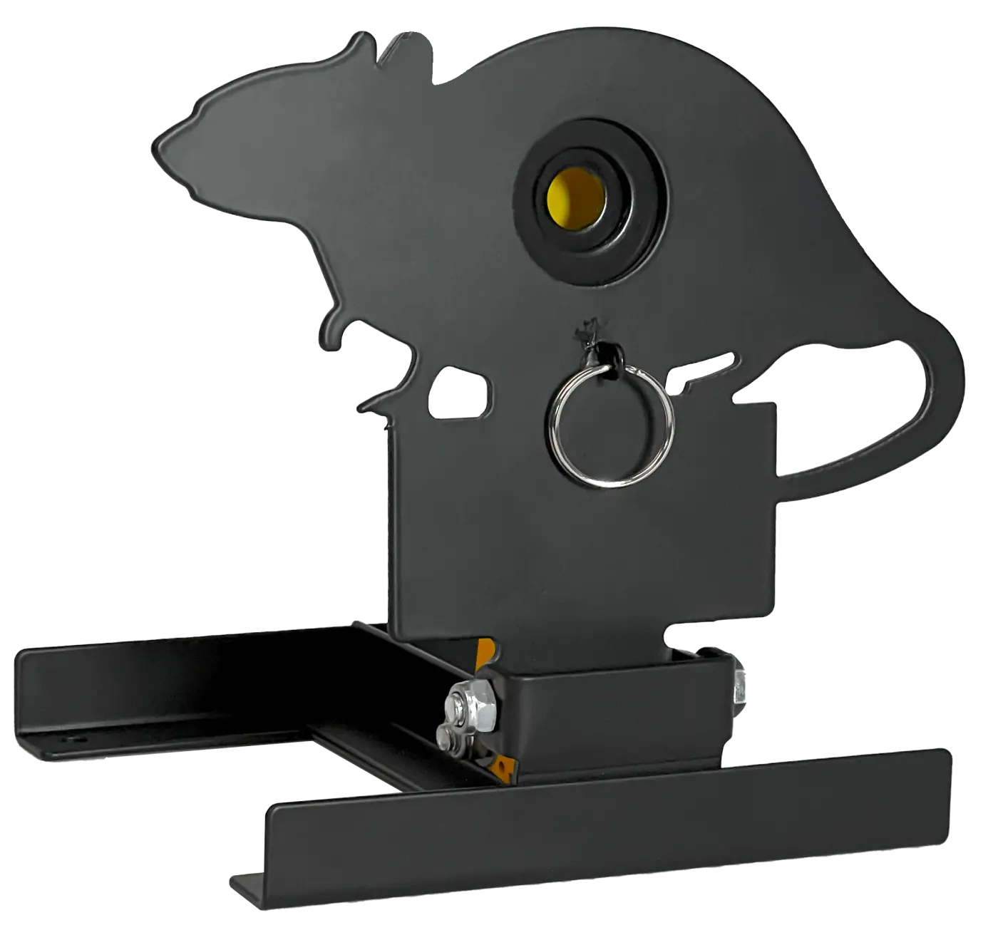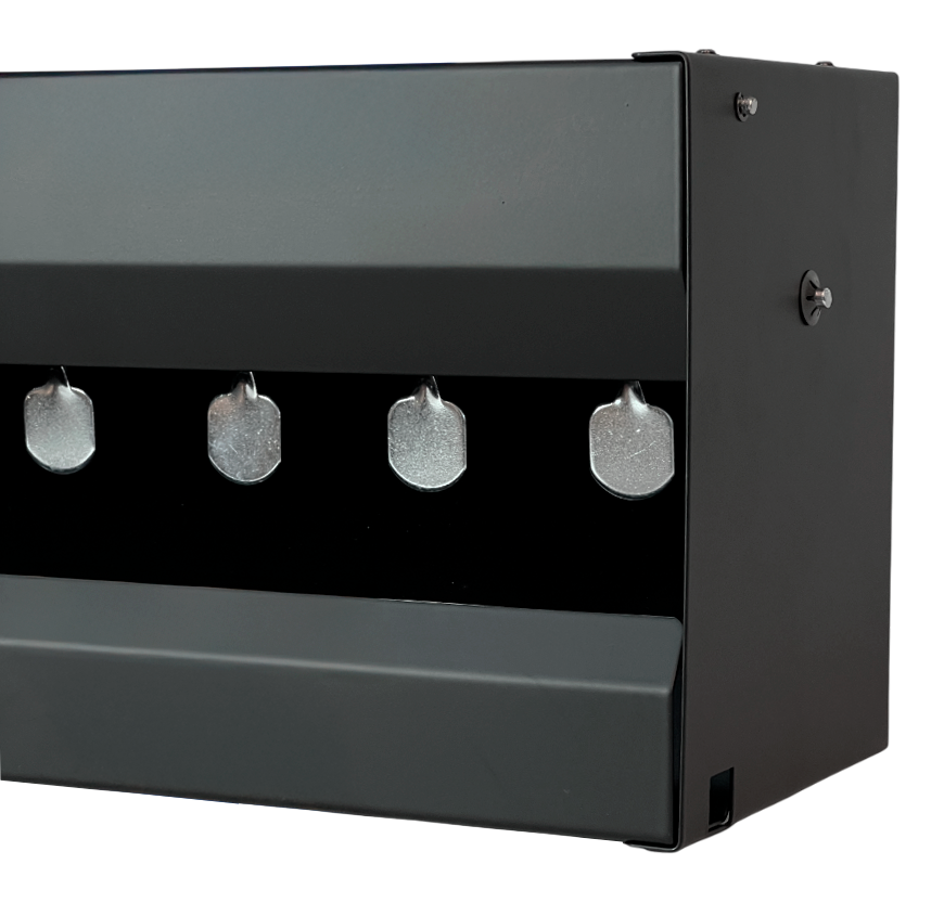 Prático e resistente, possui sistema auto-reset que reinicia os alvos ao acertar o alvo central, permitindo treinos contínuos. Construído em aço de 1,8 mm com estrutura angulada para reduzir ricochetes, pode ser usado de forma independente ou fixado na parede. Ideal para carabinas de até 20 Joules.