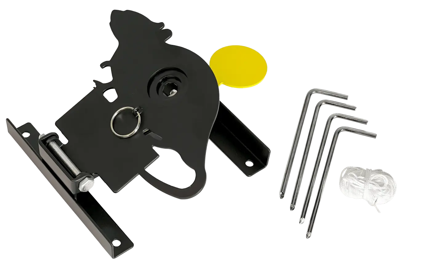 O Alvo Field Target Rato com Sistema de Redefinição por Cordão é uma escolha ideal para quem busca treinos realistas de tiro esportivo, trazendo mais dinamismo e precisão para a prática. Com uma zona de acerto em destaque na cor amarela, o alvo derruba para trás quando atingido, simulando fielmente situações de competição e proporcionando maior imersão ao atirador.O processo de rearmamento é prático e seguro, já que basta puxar o cordão de 60 metros incluso no kit para redefinir o mecanismo, sem a necessidade de se aproximar do alvo. Para garantir firmeza durante os disparos, o produto acompanha quatro estacas que permitem fixá-lo ao solo, aumentando a estabilidade durante os treinos.