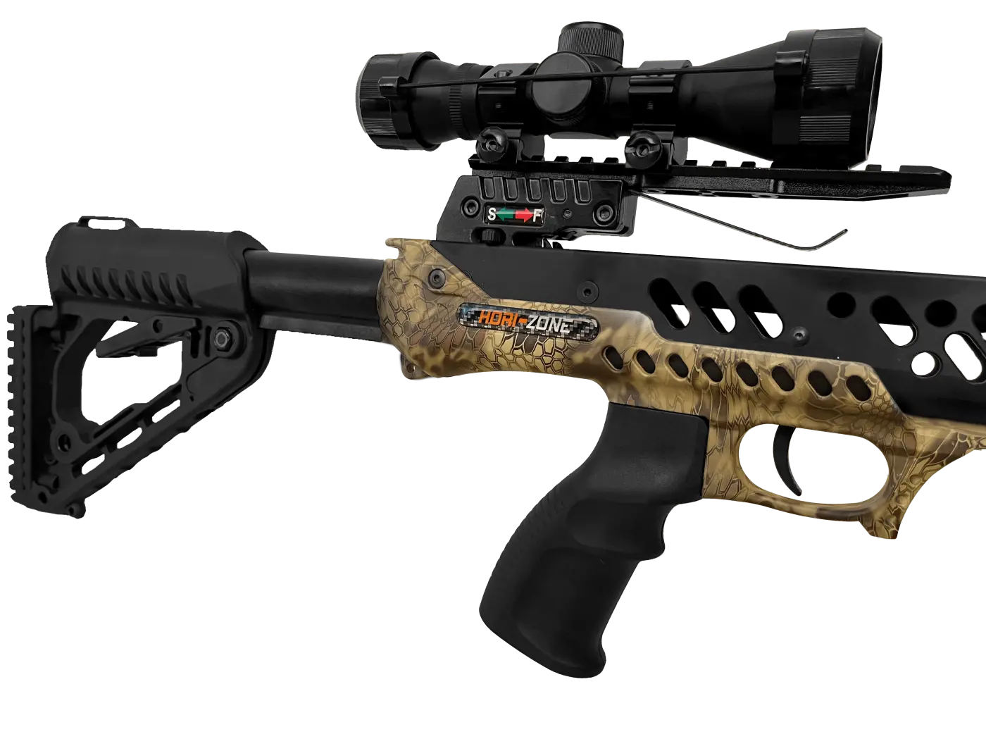 A coronha ajustável do tipo AR oferece conforto e versatilidade, permitindo que você encontre a posição perfeita para cada tiro. O gatilho de precisão de 3.5lbs garante disparos suaves e controlados, proporcionando uma experiência de tiro sem igual.