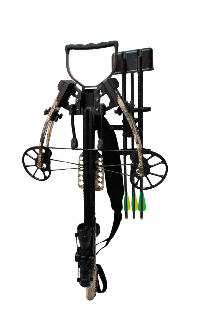 | Acompanha: 3 Setas, Bandoleira, Corda Auxiliar, luneta 4x32E, cera, estribo |