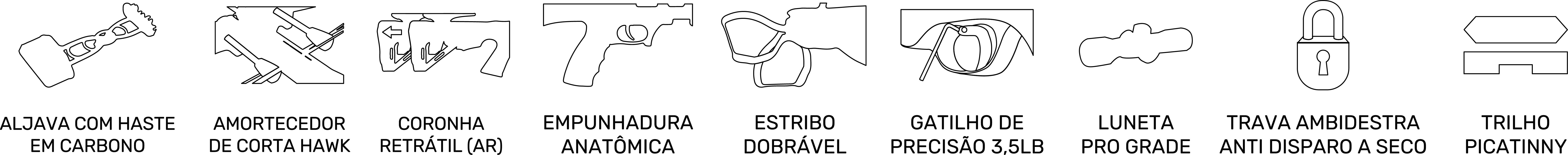 O gatilho de precisão de 3,5 lbs garante disparos suaves e controlados, complementados pela luneta Pro Grade, que oferece visão clara e nítida do alvo. Para maior segurança, a balestra conta com trava ambidestra anti dry fire e trilho Picatinny, permitindo a instalação de acessórios adicionais, como miras holográficas e lanternas táticas.