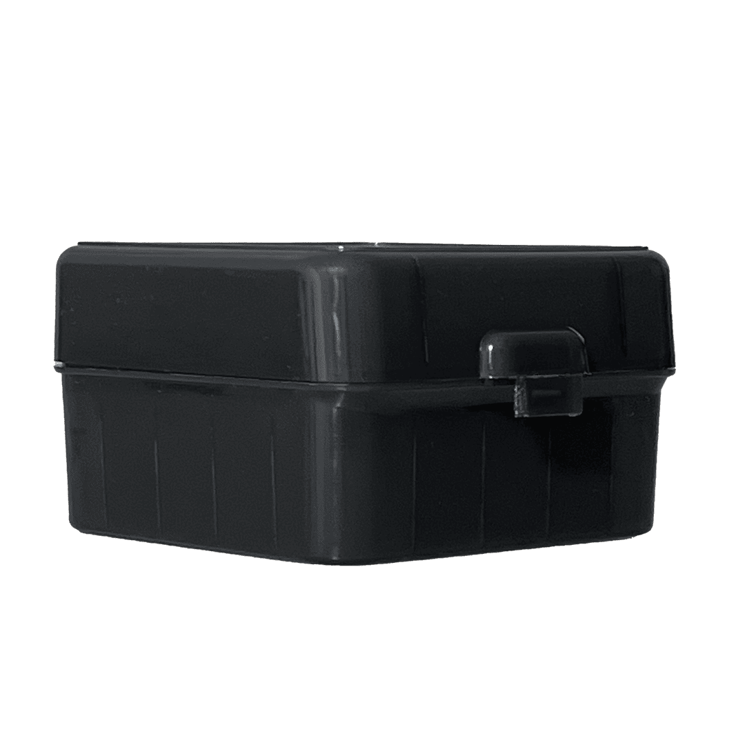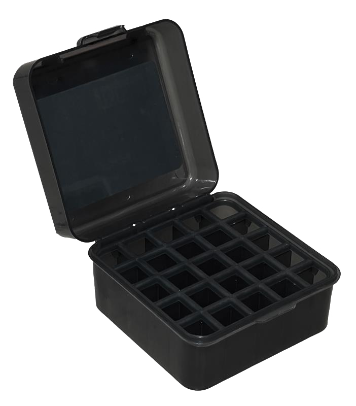 Caixa resistente em polipropileno, ideal para transporte e armazenamento seguro de até 25 cartuchos dos calibres 12, 16 e 20Ga. Compacta (12,5 x 12,5 x 7,5 cm) e leve (170 g), possui tampa com dobradiça e trava, oferecendo praticidade e durabilidade para caçadores e atiradores esportivos.