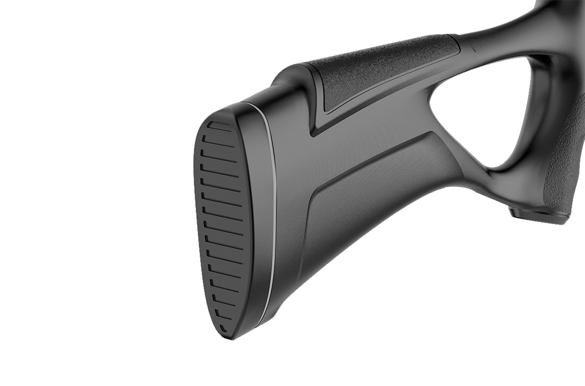 O design da coronha sintética, no formato thumbhole, eleva o conforto e a firmeza da empunhadura, culminando em uma precisão aprimorada nos disparos. A soleira emborrachada não apenas proporciona um amortecimento eficaz dos impactos, mas também resguarda a parte traseira da coronha, prevenindo desgastes indesejados.