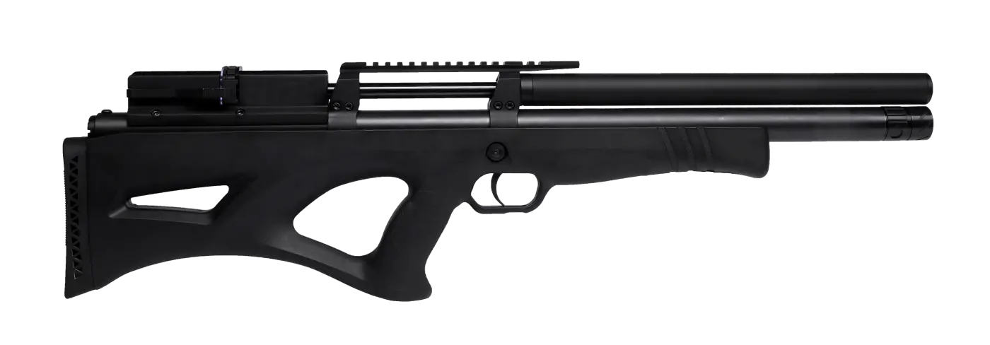 Com 123,5 cm de comprimento total, cano de 80 cm e peso de 3,85 kg, o modelo entrega estabilidade e precisão mesmo em condições exigentes, além de contar com trilho de 11 mm para instalação de acessórios ópticos. Acompanha dois magazines e o-rings, formando um conjunto completo, extremamente potente e confiável, ideal para quem busca o máximo em performance dentro da linha Big Bore.
