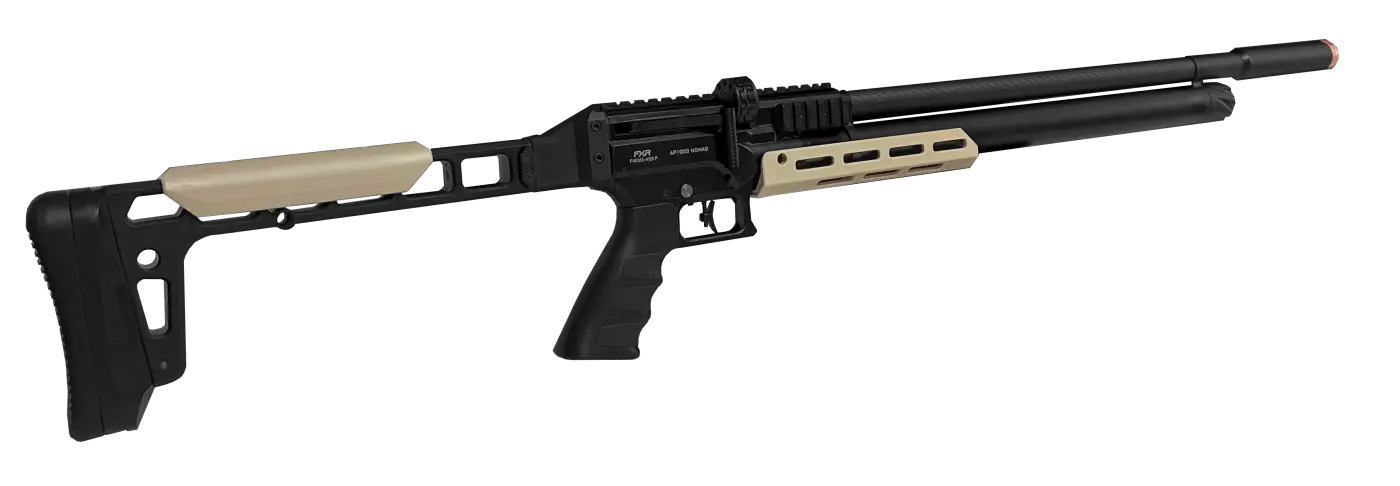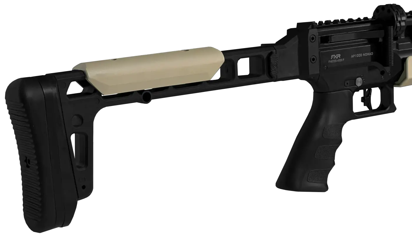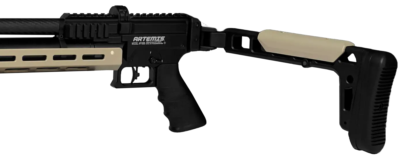 A Carabina de Pressão Artemis AP1000 Nomad 6.35mm apresenta um design moderno e funcional, pensada para atiradores que buscam precisão, potência e mobilidade. Seu visual contemporâneo combina soluções ergonômicas com materiais leves, resultando em uma arma prática tanto para uso em campo quanto para transporte.A coronha rebatível torna a AP1000 Nomad especialmente compacta quando necessário, facilitando o armazenamento e o deslocamento sem comprometer o conforto: ela traz encosto de bochecha e soleira em borracha para melhor apoio e absorção de impacto. A empunhadura tipo pistol grip conta com revestimento soft antiderrapante, oferecendo pegada firme e controle durante a empunhadura.