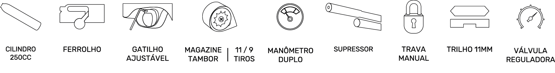 A propulsão se dá por ar pré-comprimido (PCP). Este sistema utiliza um cilindro de ar instalado na parte inferior da carabina. O cilindro deste modelo possui capacidade de 250cc. A recarga do cilindro pode ser feita de 3 maneiras sendo: bomba manual, cilindro scuba ou compressor PCP. Manômetro integrado no cilindro.