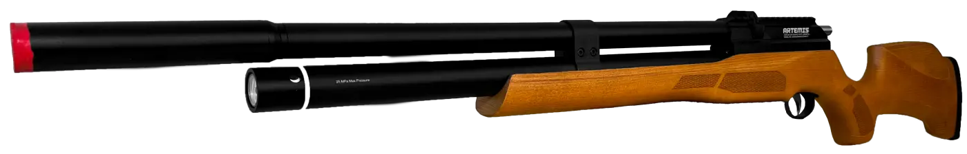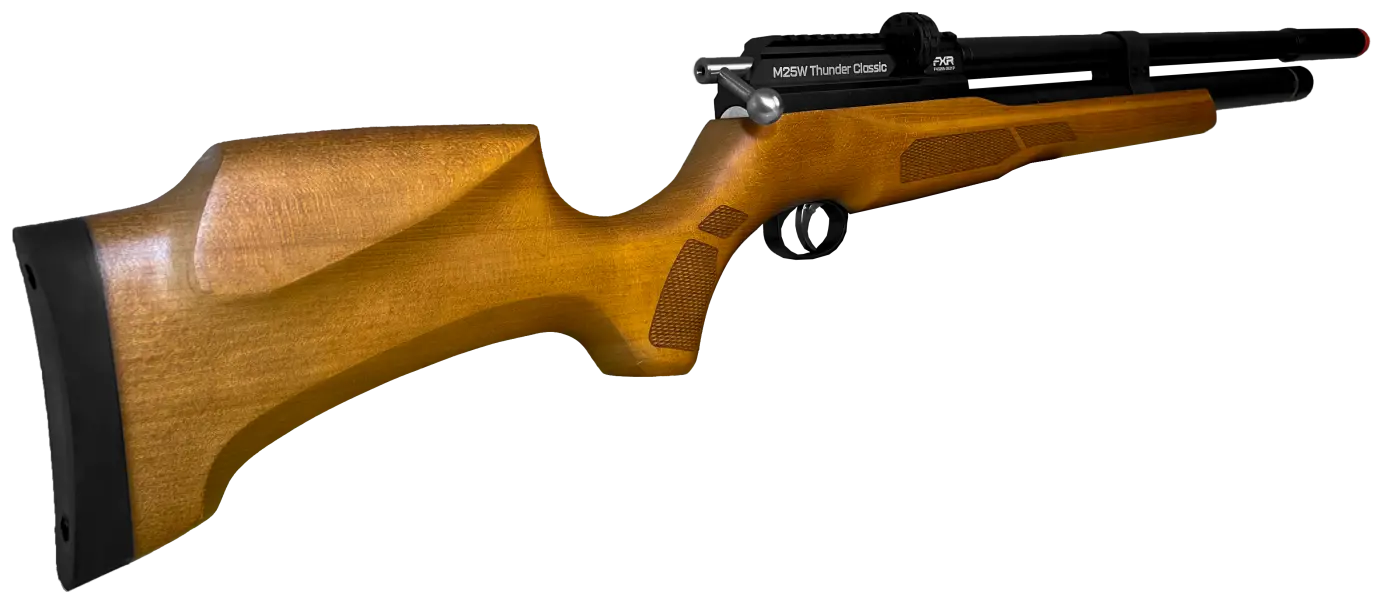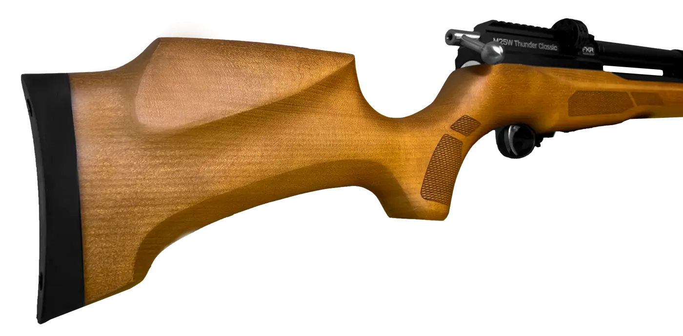 A Carabina PCP Artemis M25W Thunder Classic 5.5mm reúne precisão e potência com acabamento refinado em madeira European Beech.