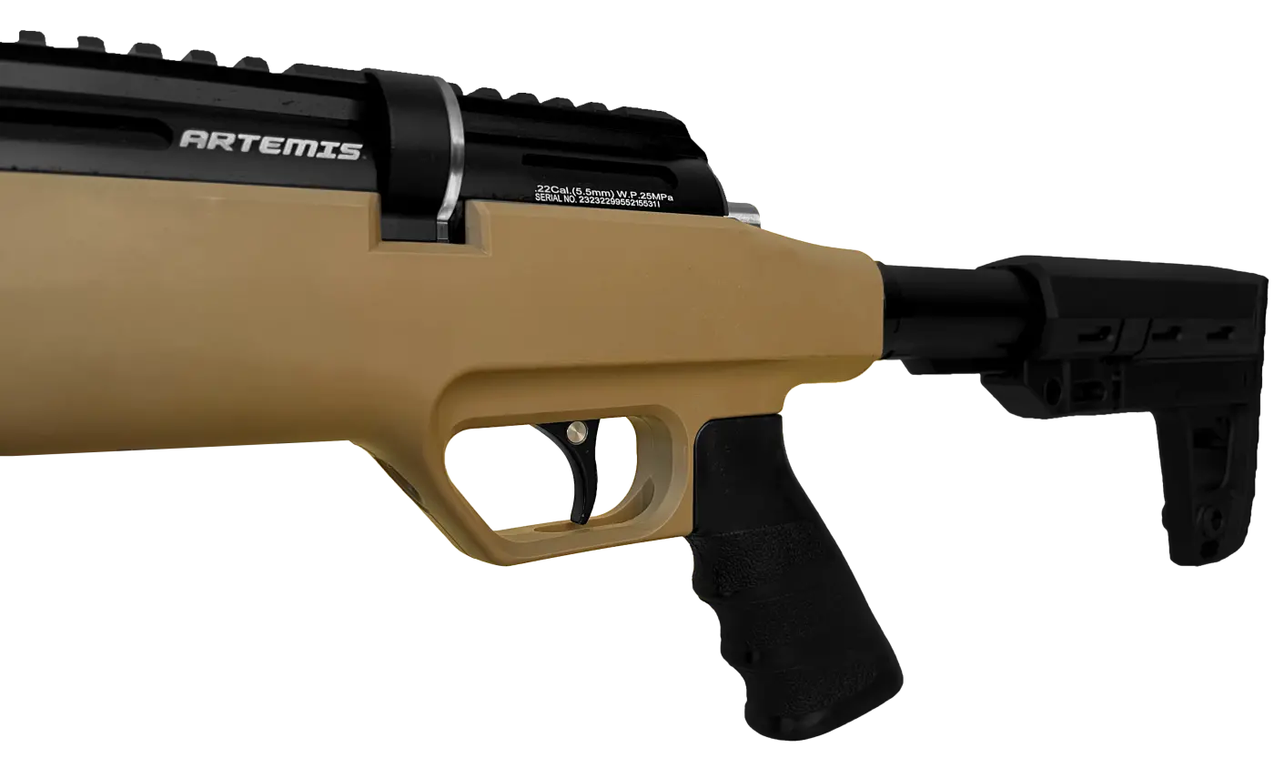 A Carabina PCP Artemis M30C Upper é uma arma potente e precisa, construída com tecnologia avançada da Artemis, com coronha sintética leve em cor coyote e design pistol grip ajustável em 5 posições.
