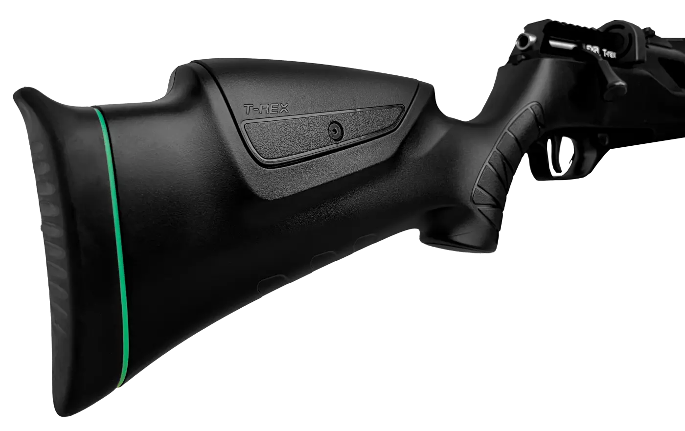 O engatilhamento bolt action é aprimorado por um ferrolho totalmente ambidestro, tornando a carabina acessível a atiradores de diferentes preferências. Além disso, a inclusão de alça e massa de mira com fibra óptica, ajustáveis horizontal e verticalmente, juntamente com trilhos superior e inferior para lunetas e bipé, solidificam a T-Rex como uma carabina completa, pronta para atender às exigências dos atiradores mais exigentes.