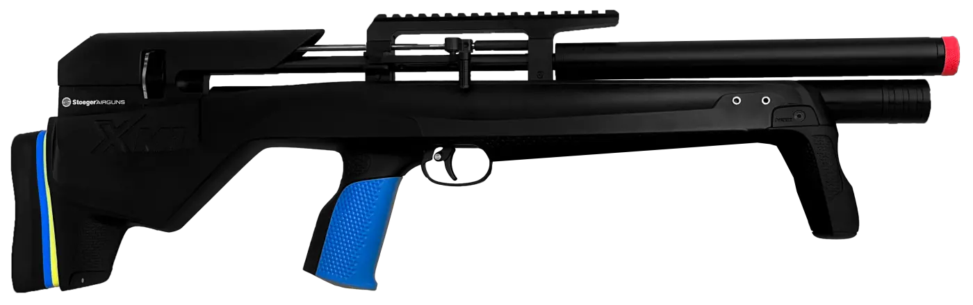 Sistema PCP: cilindro de 220 cc (pressão de trabalho 3.200 psi / 220 bar) com recarga via bico Foster e autonomia ≈30 disparos; válvula reguladora automática a 2.100 psi (145 bar).