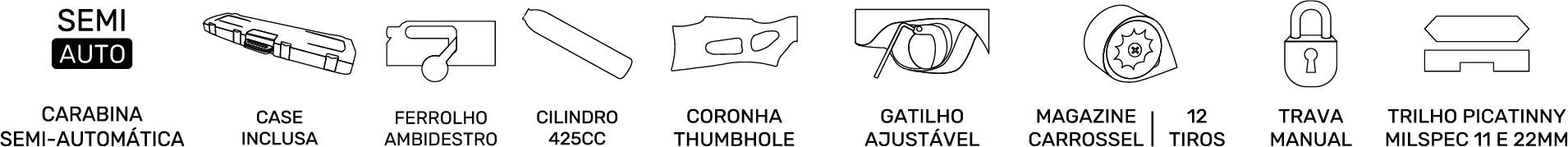 A primeira característica trata-se da carabina ser semi-automática. Esta tecnologia possibilita um tiro com cadência muito mais acelerada, pois, basta o atirador efetuar o primeiro engatilhamento e atirar.