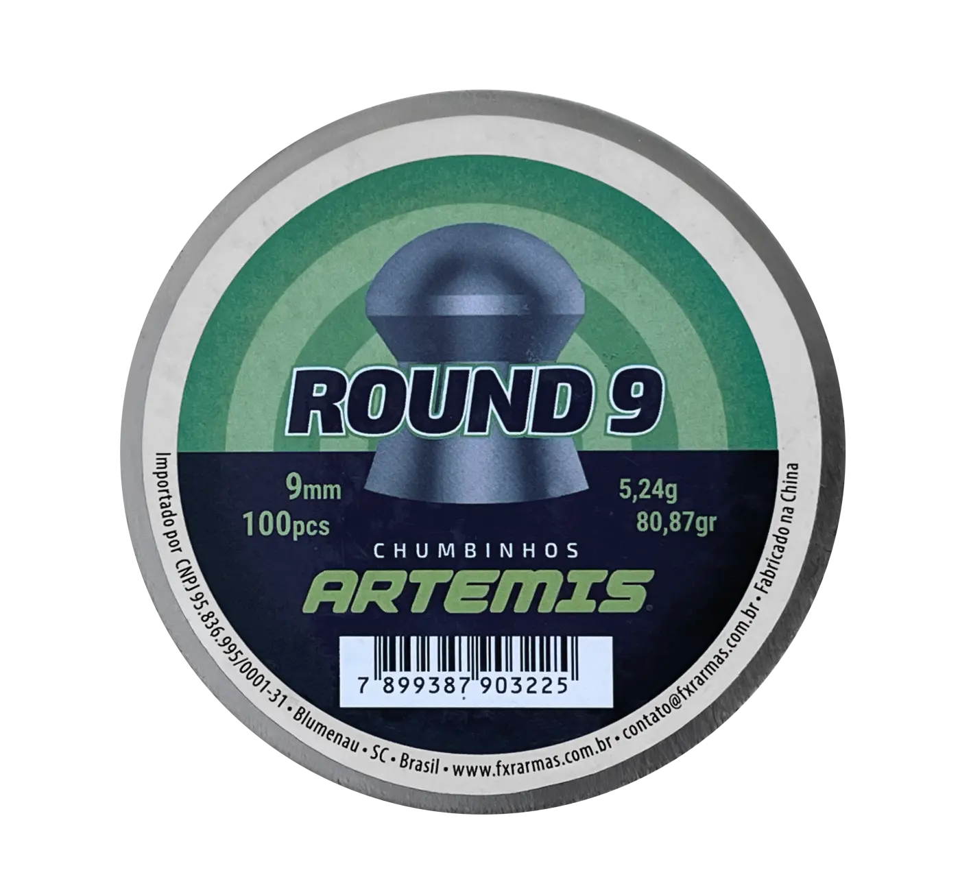 Chumbinho Artemis Round 9mm 5.24g/80.87gr - Lata 100un
