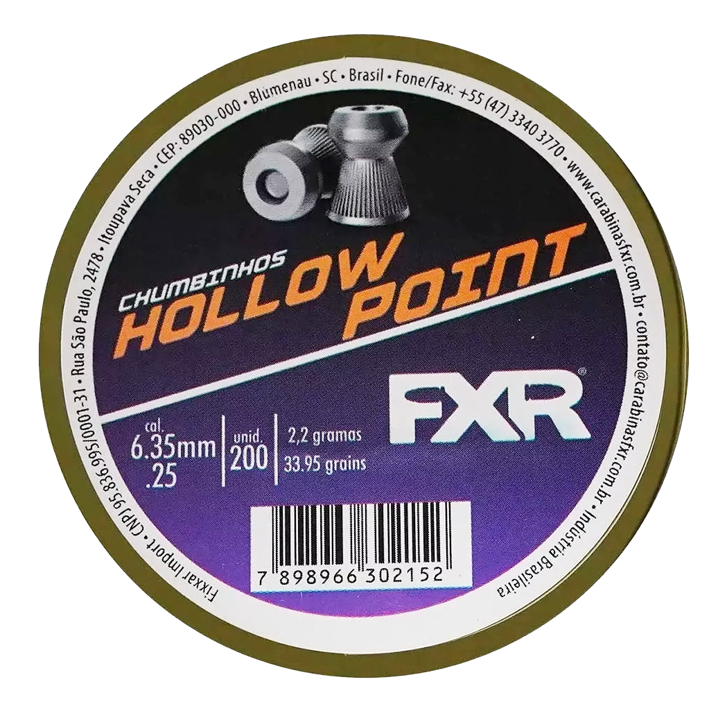 Peso de 1.37g no calibre 5.5mm. Lata com 200un.