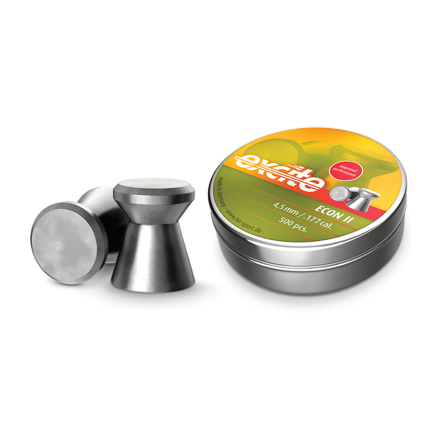 O Excite Econ II é um chumbinho da linha Excite da H&N, fabricado na Alemanha, mantendo os altos padrões de qualidade da marca. Desenvolvido para tiro ao alvo, possui cabeça chata que permite marcações precisas em papel. Pode ser utilizado em qualquer carabina ou pistola de pressão, com gramatura média e desempenho consistente. A liga de chumbo especial reduz a incrustação no cano, melhorando a precisão dos disparos. Cada embalagem contém 500 unidades, peso de 0,48 g (calibre 4,5 mm).