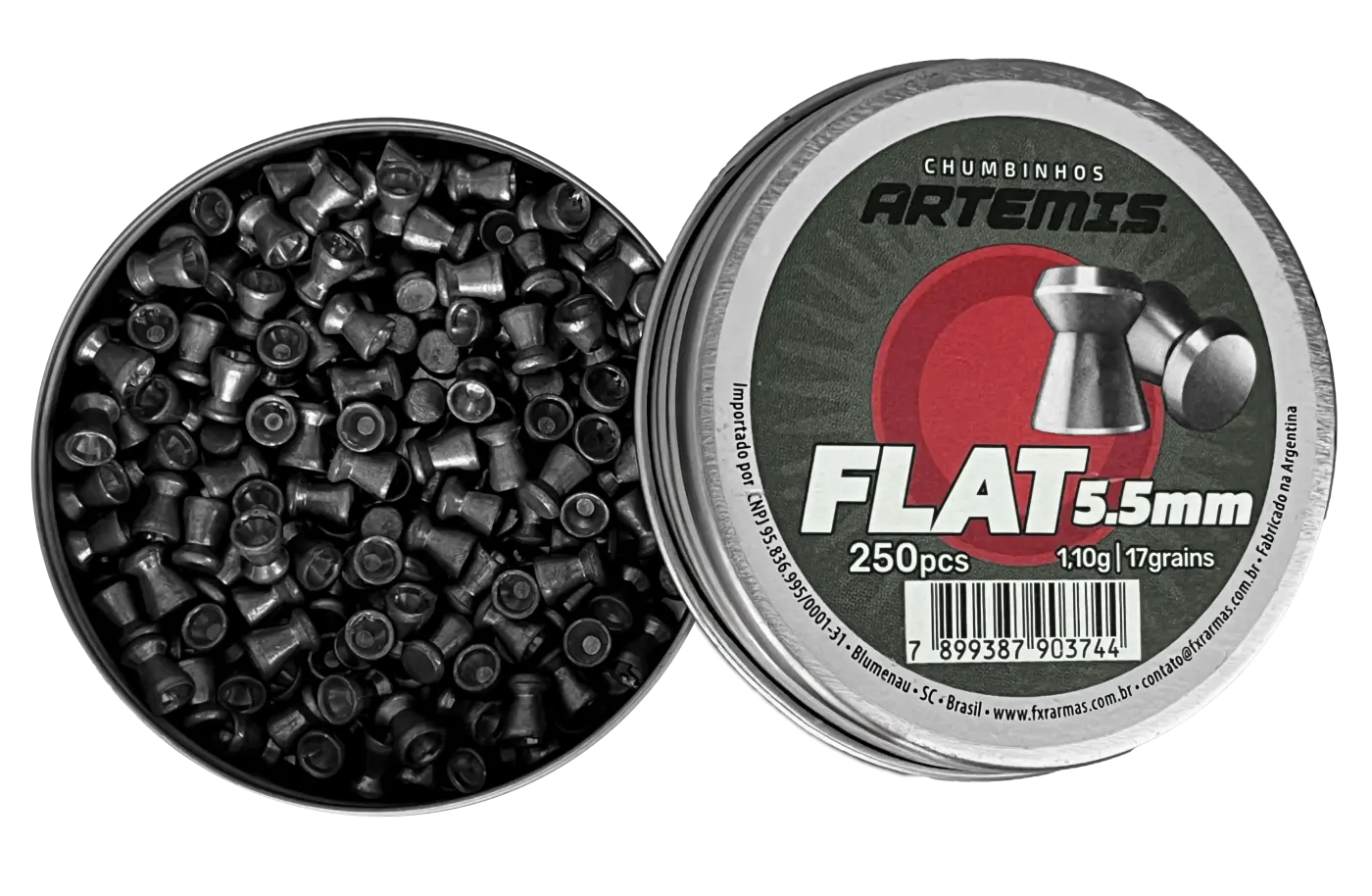 Peso de 0.83g (12,81gr) no calibre 5.5mm. Lata com 250un.