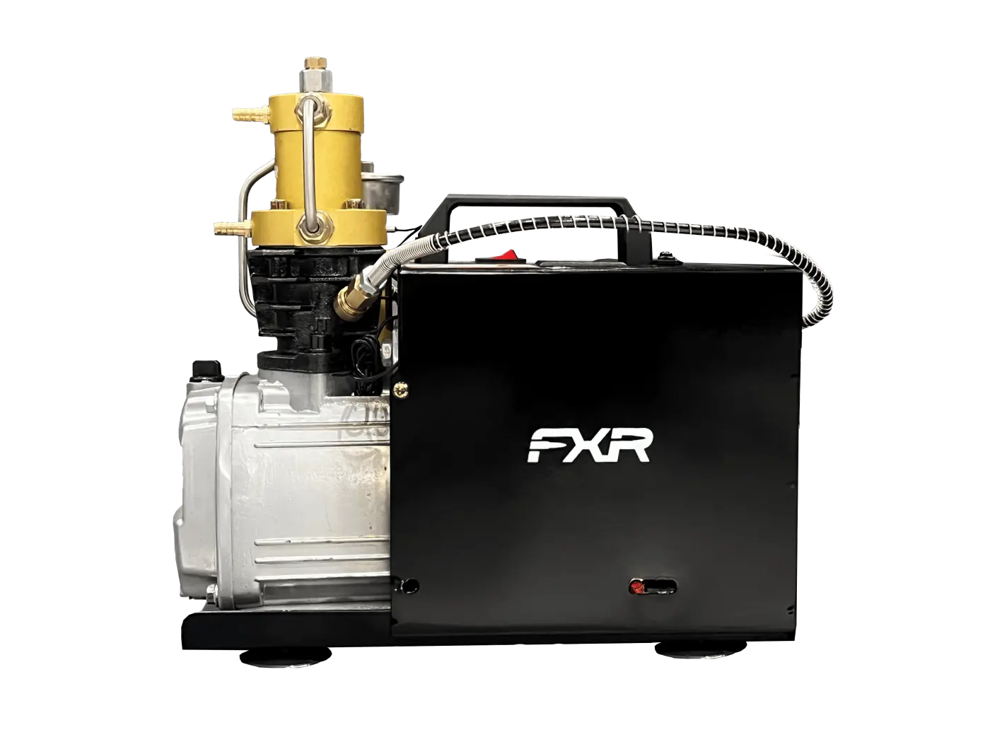 Compressor de Ar FXR 220V, alta pressão 300bar/4500psi, ideal para cilindros PCP e Scuba até 6,8L. Motor 1800W, fluxo 35L/min e recarga rápida (0,5L em ~5min). Possui refrigeração a água com ventilador, filtro externo para ar puro e conexão rápida 8mm. Compacto (41x24x45cm), pesa 16,7kg e acompanha bomba d’água, mangueiras, filtros e kit de reparos.