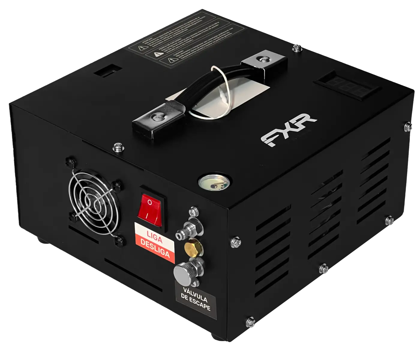 Compressor de Ar de Alta Pressão 300bar 30mpa 4500psiO Compressor FXR 220V é compatível com cilindros de carabinas PCP e cilindros Scuba até 6.8L