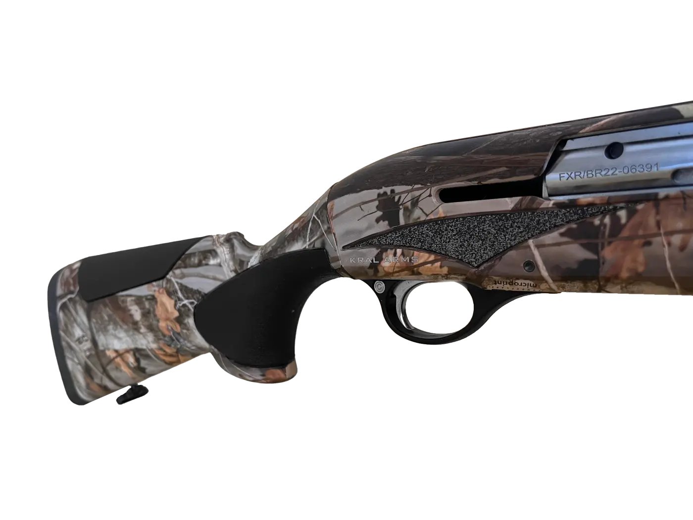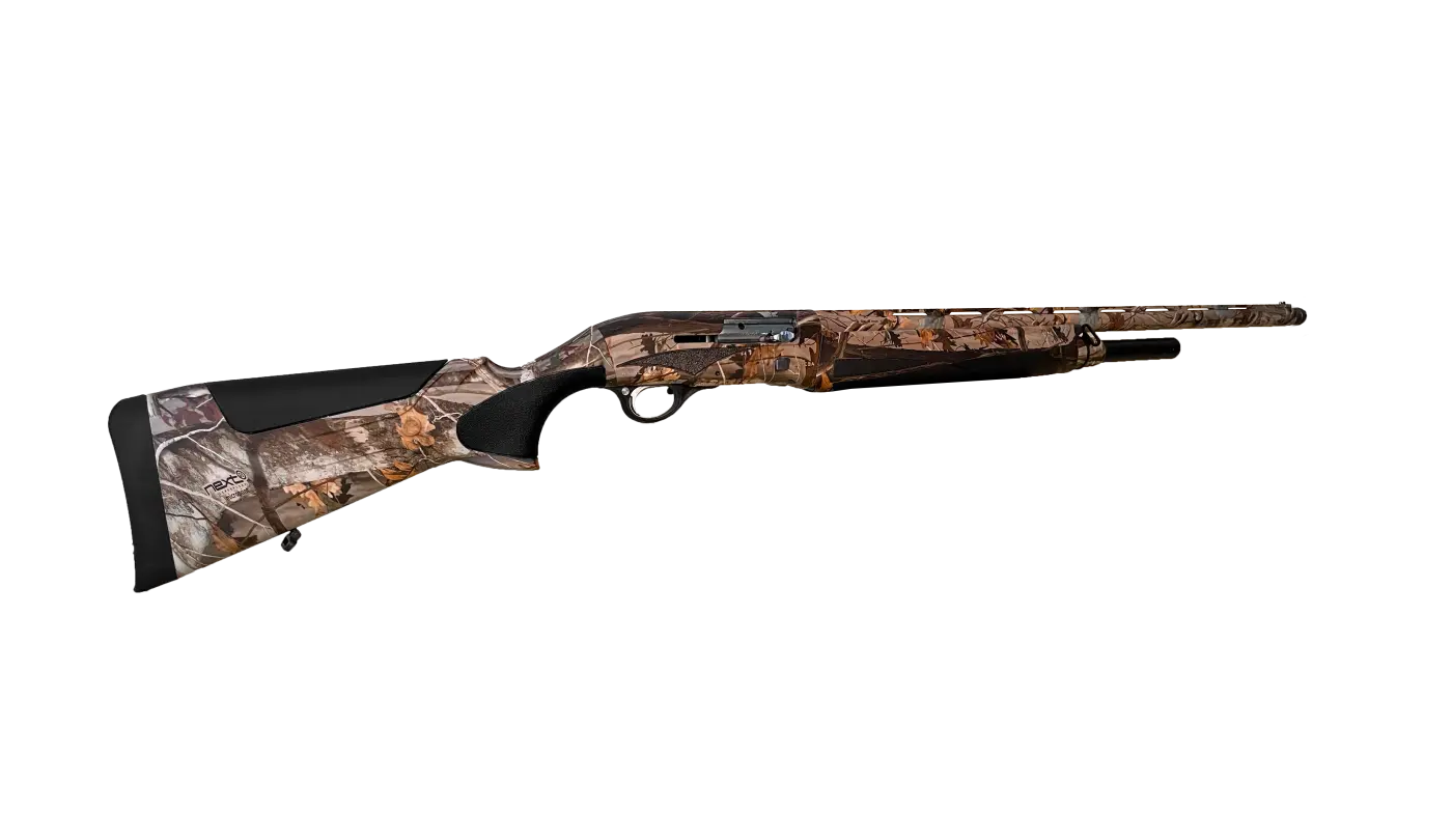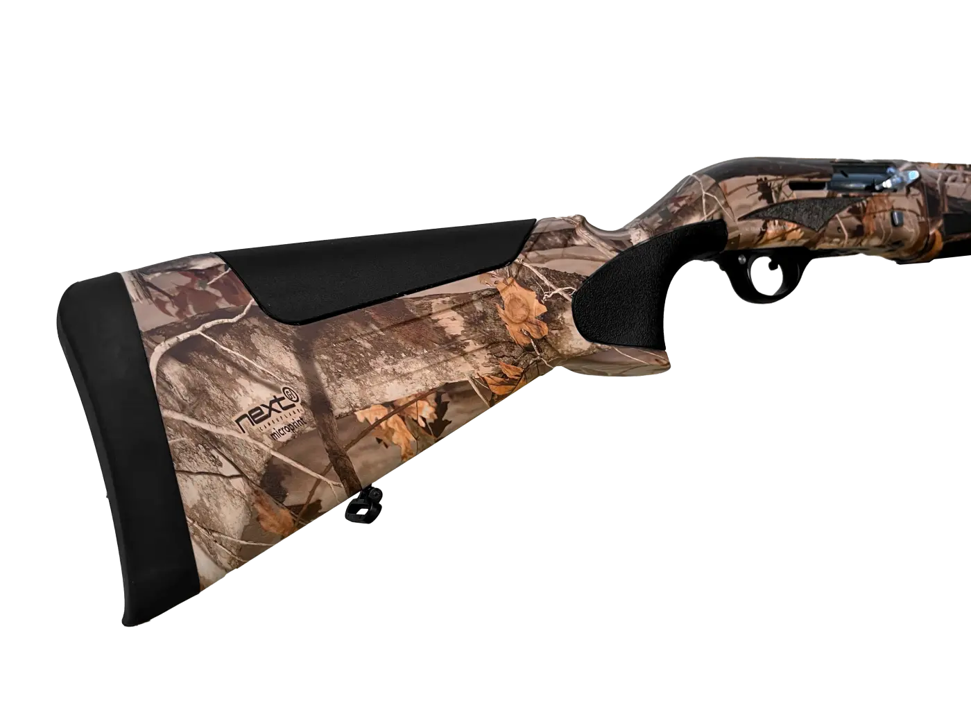Versão premium com coronha sintética de alta qualidade e grip antiderrapante, revestida com camuflagem Mossy Oak patenteada.