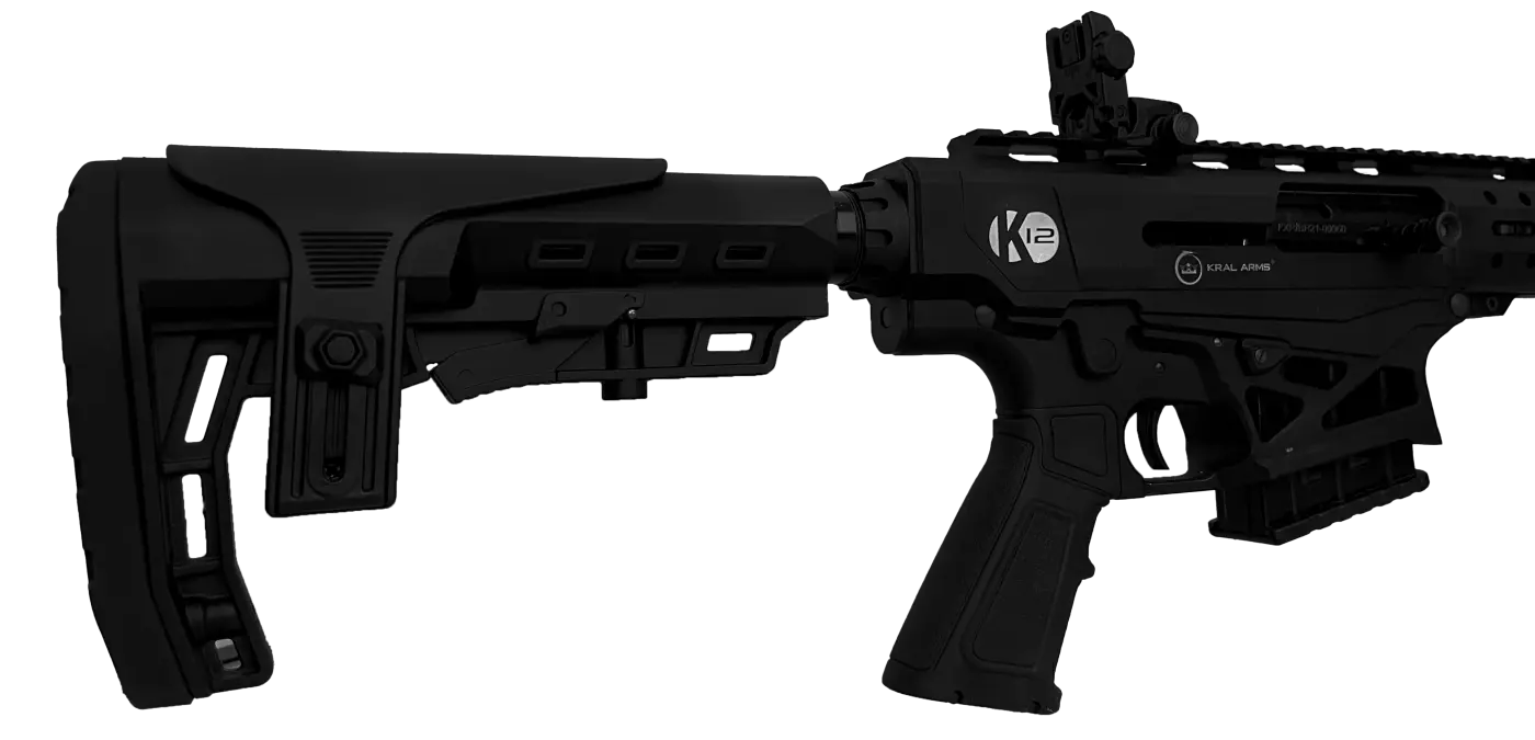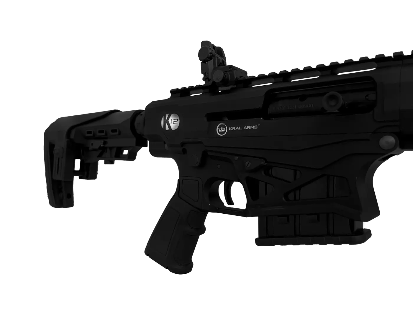 O modelo K12 faz parte de uma linha de espingardas Kral que utilizam plataforma de fuzil AR e AK. Este modelo tático inspirados nos rifles M4 permite a instalação de vários acessórios como lanternas, miras, bipés, front grips e etc, além de possuir um design imponente.
