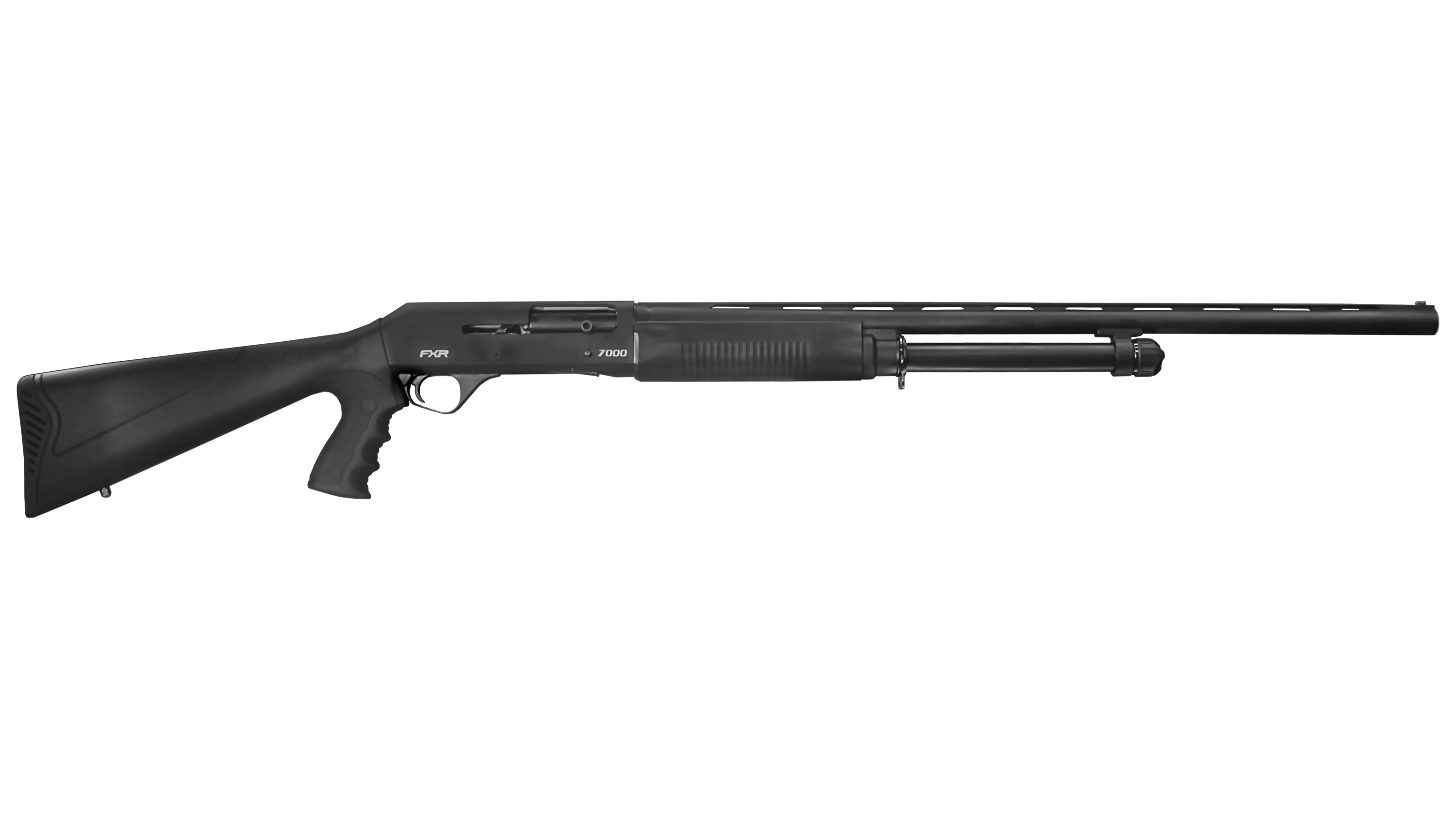 O cano possui 18,5” com muzzle break e o comprimento total da espingarda é de 93cm.