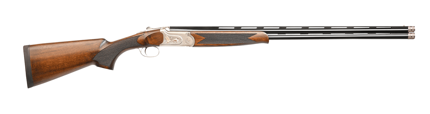 A arma é equipada com dois canos sobrepostos, muito utilizada para campeonatos de Trap ( tiro ao prato ).