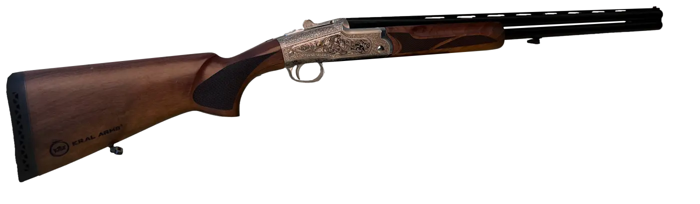 A Kral ST500 Elite é uma espingarda topo de linha da Kral Arms, construída com alta tecnologia e acabamento premium. Traz coronha de luxo em nogueira turca com alto brilho e soleira de borracha, além de receptor em alumínio aeronáutico com desconto manual lavrado que a torna mais exclusivo. Possui dois canos sobrepostos em aço oxidado, cano de 30" e comprimento total de 120 cm, com seleção manual do primeiro disparo e gatilho de acionamento sequencial automático para dois tiros. Conta com indicador de cartucho na câmara para maior segurança e ação manual por repetição com ejeção automática ao recarregar. Em calibre 12GA com câmara de 3" compatível com cartuchos Magnum, capacidade de 2 tiros e conjunto de 5 chokes cambiáveis (C/IC/M/IM/F).