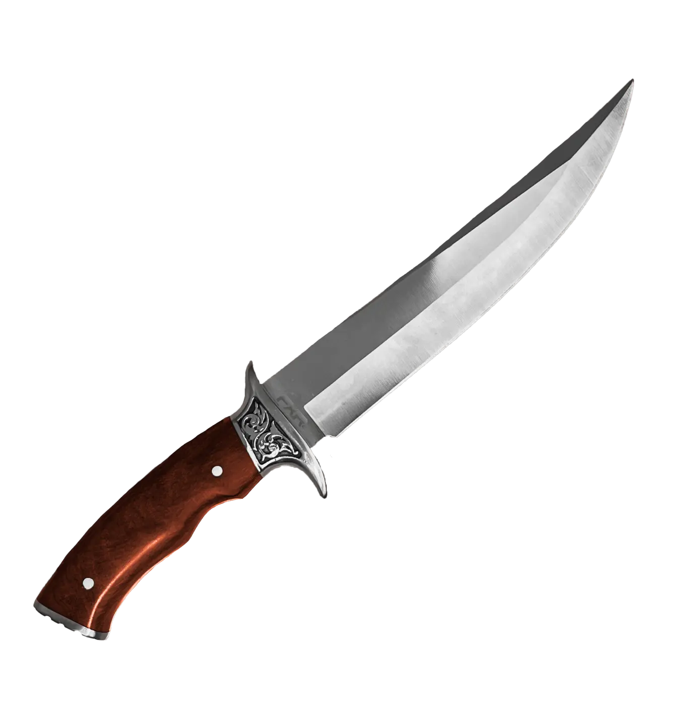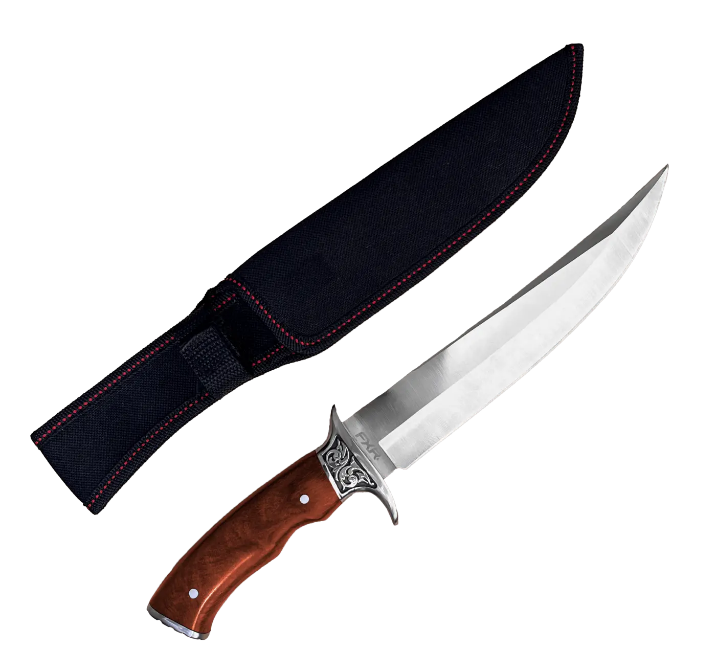 Faca Multiuso FXR Aragorn: elegante e funcional, com lâmina em aço inox 3Cr13 de 20 cm, afiada e versátil. Cabo em madeira Rosewood anatômico, guarda em aço com gravação e pomo em metal, unindo segurança e estilo. Mede 31,8 cm no total, pesa 361 g e acompanha bainha de nylon resistente. Ideal para caça e aventuras outdoor.