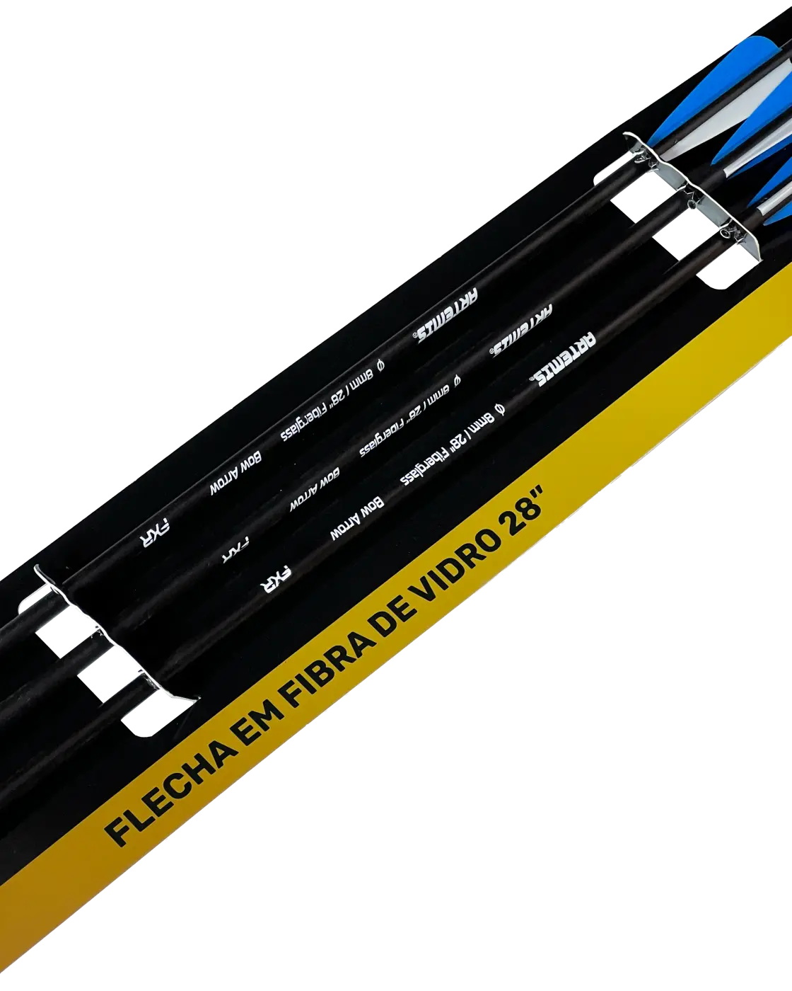 Flecha resistente e precisa, feita em fibra de vidro com 28" de comprimento e 8 mm de diâmetro. Possui nock em ABS, ponteira de aço e peso de 39,3 g (606,5 grains), ideal para treinos e prática de tiro com arco.