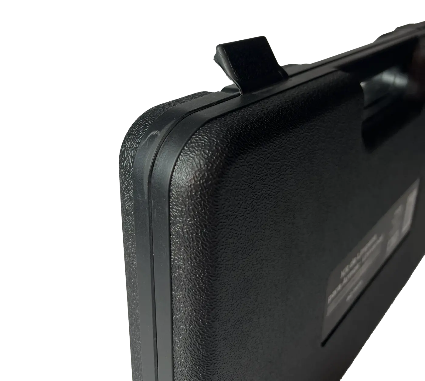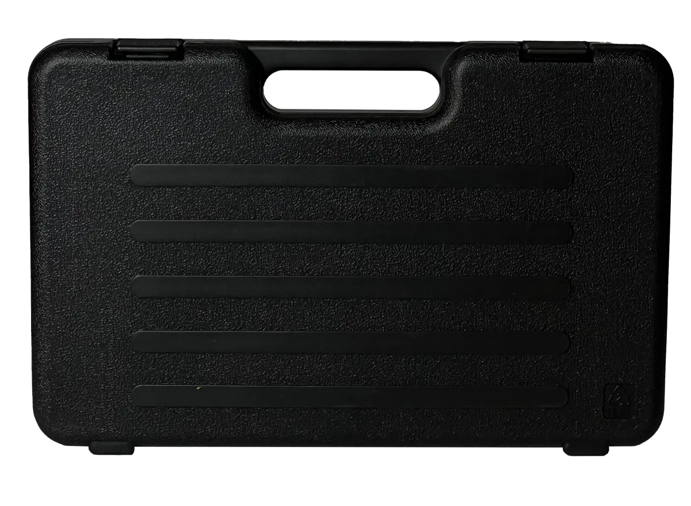 O kit é apresentado em um robusto case rígido com dimensões de 40x26x5.5cm, proporcionando um armazenamento seguro e organizado para todas as ferramentas inclusas.