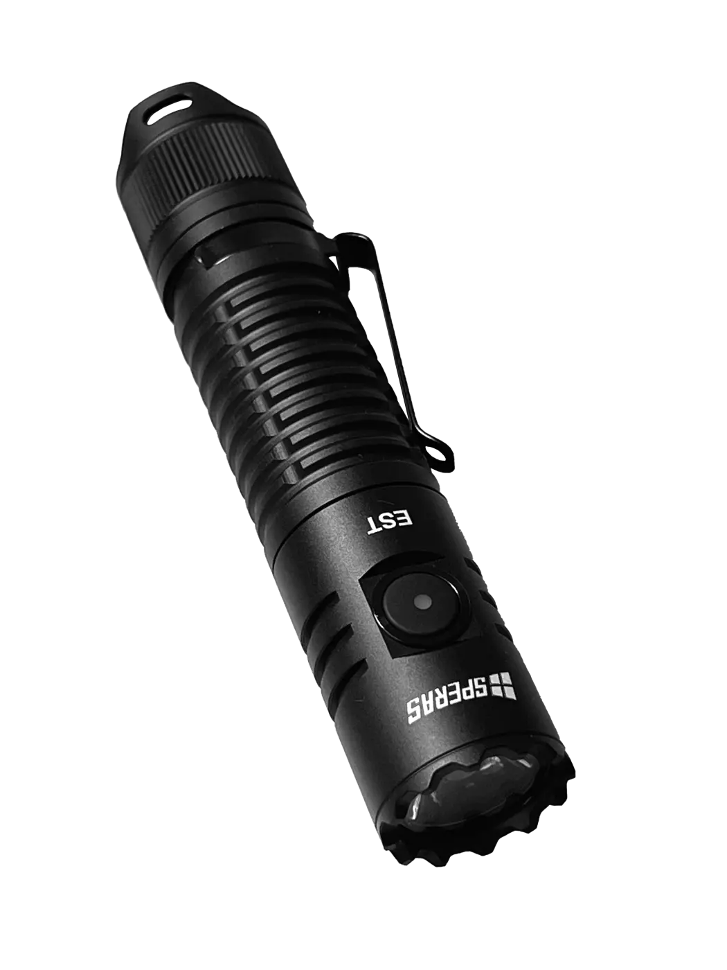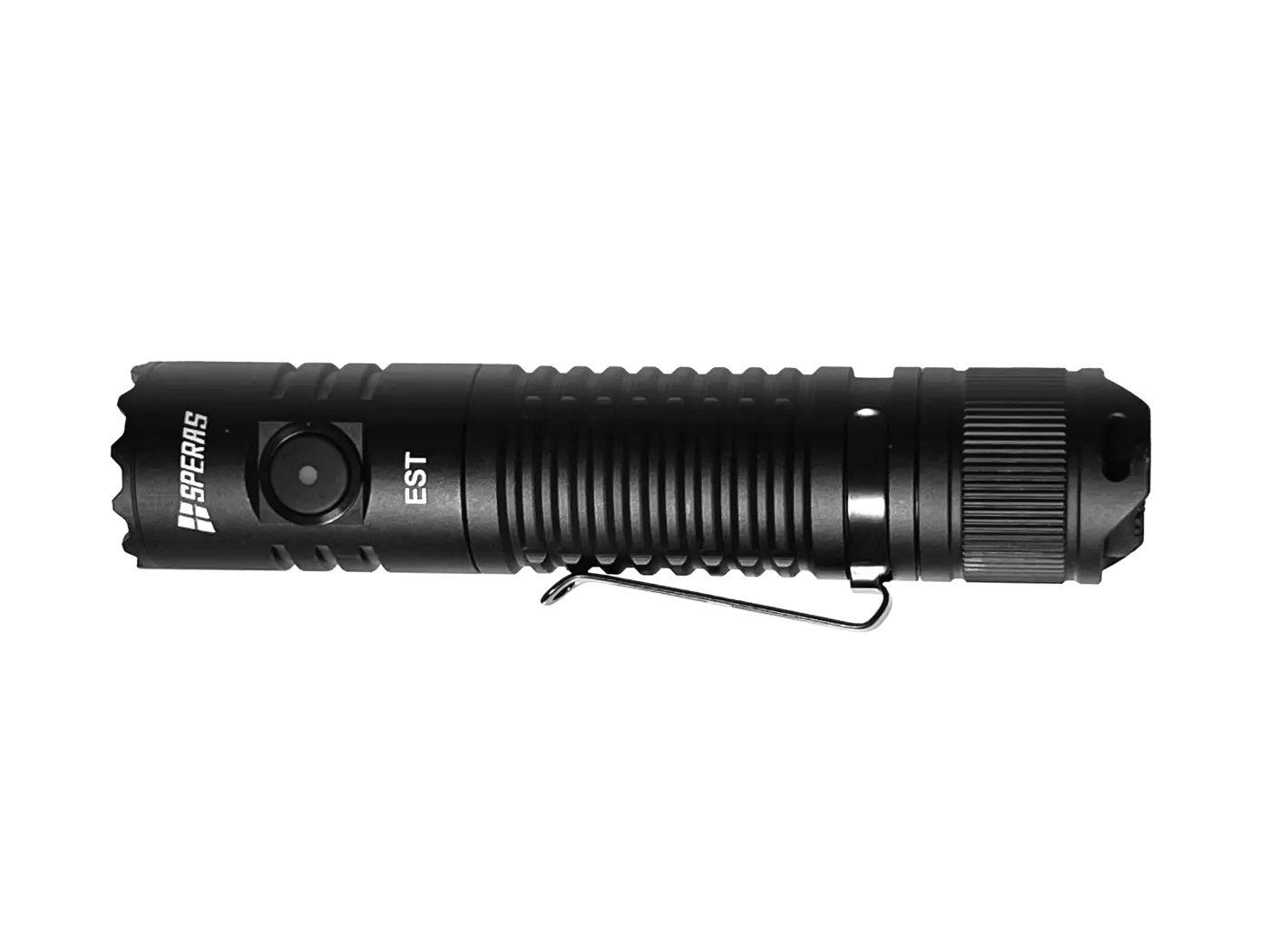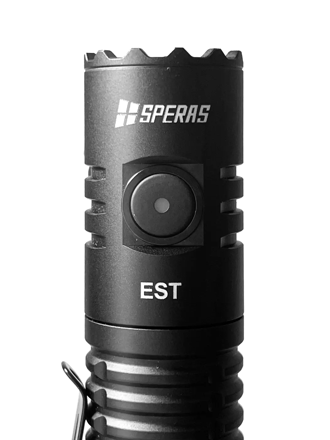 A SPERAS EST é uma lanterna compacta (12 cm), de alto desempenho (1900 lúmens) e de longa duração (4h de autonomia no modo “high” e 157 horas no modo "low") e um alcance de feixe de 211m.