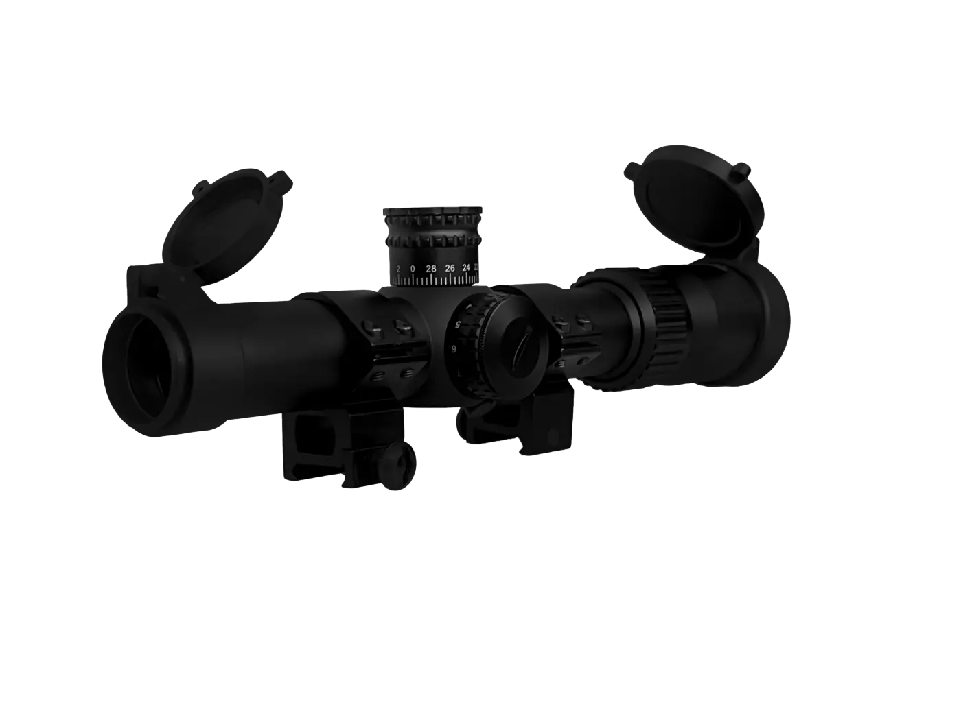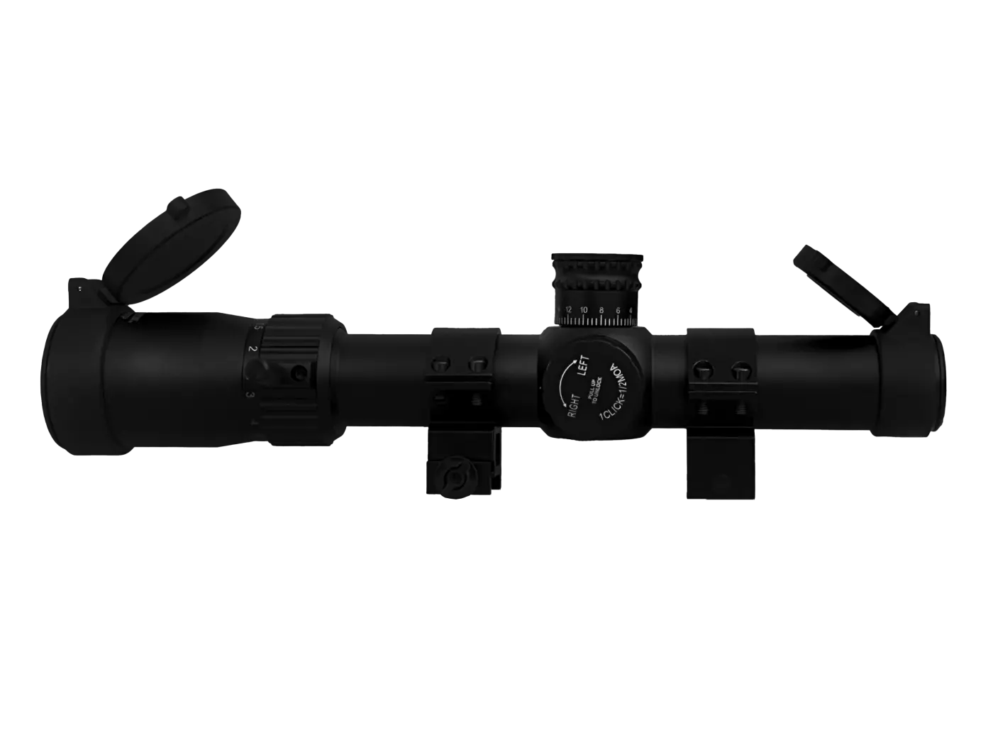 A Luneta Artemis 1–6x24 FFP é uma óptica versátil para visada rápida em curto e média distância, indicada para CQB e caça em movimento.