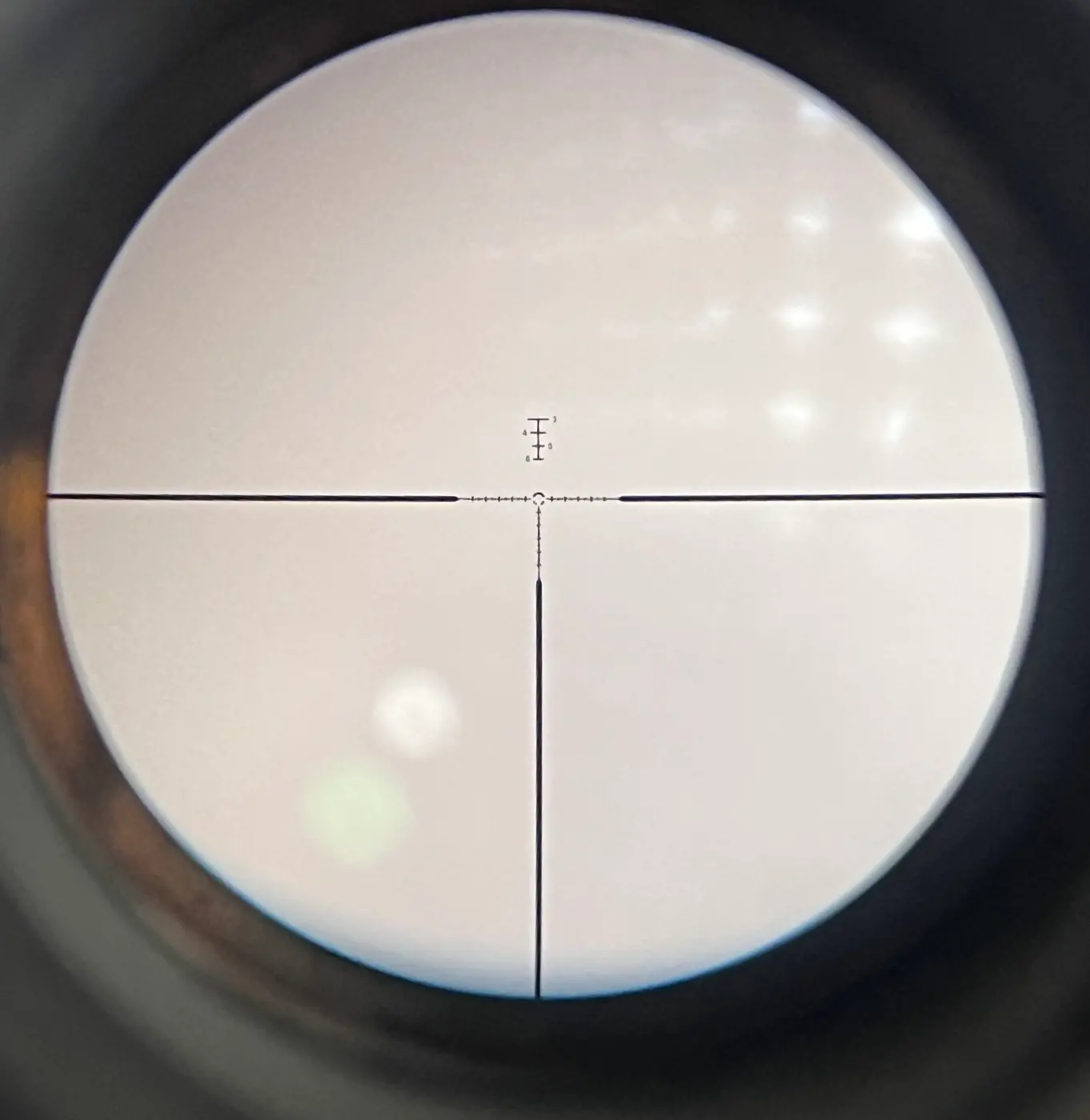 O conjunto óptico oferece zoom contínuo de 1 a 6×, permitindo transições eficientes entre tiros de curta e média distância sem perder definição. Por ser de primeiro plano focal (FFP), o retículo Mil-Dot aumenta proporcionalmente ao zoom, o que facilita estimativas e compensações de distância em qualquer aumento escolhido; além disso, o retículo é gravado na lente para maior resistência a impactos e conta com iluminação do tipo short dot, que funciona de maneira semelhante a um red dot em situações de baixa luminosidade.