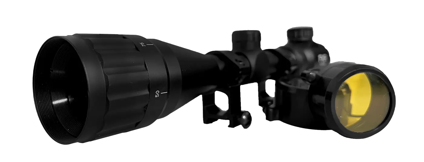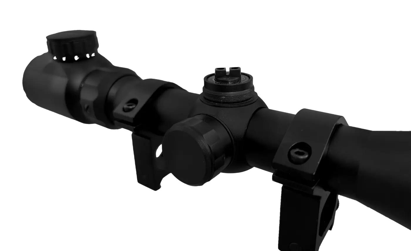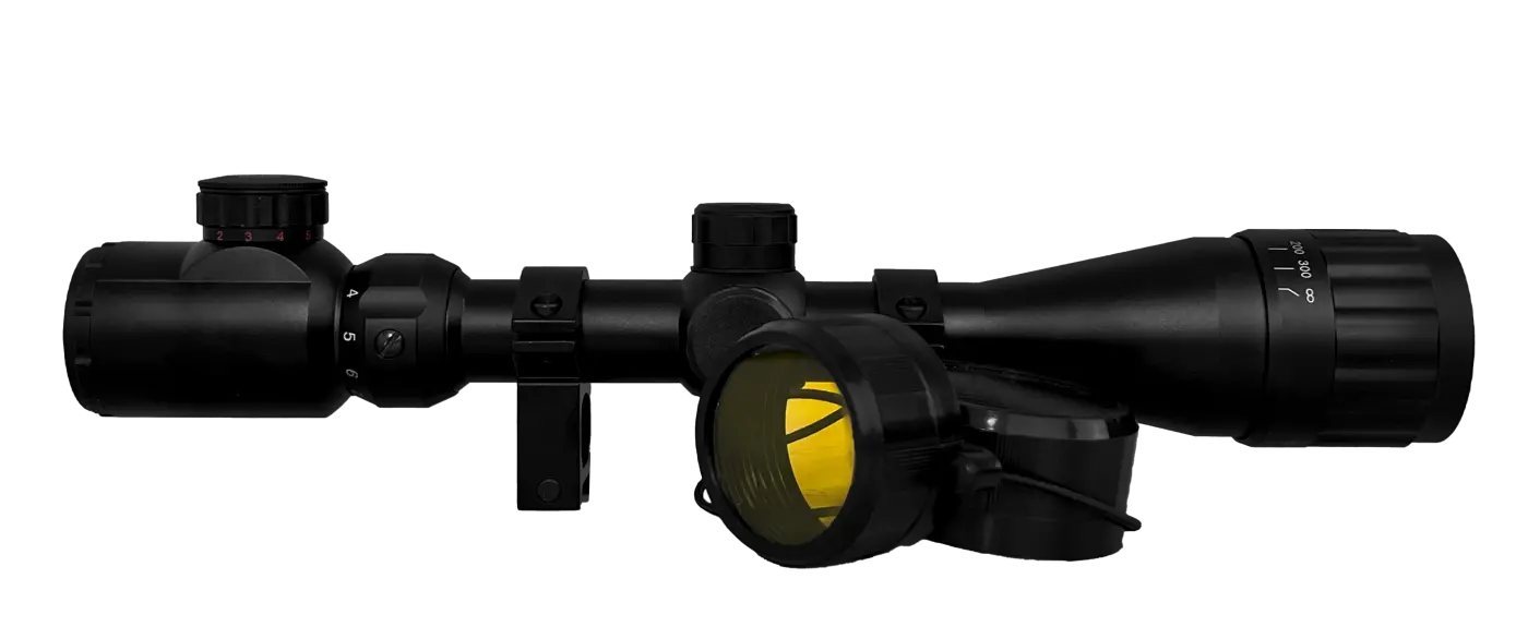 A objetiva da luneta ( lente frontal ) possui 40mm de diâmetro, um excelente tamanho, que aumenta o campo de visão do equipamento para mais de 100 metros dependendo da distância do alvo.