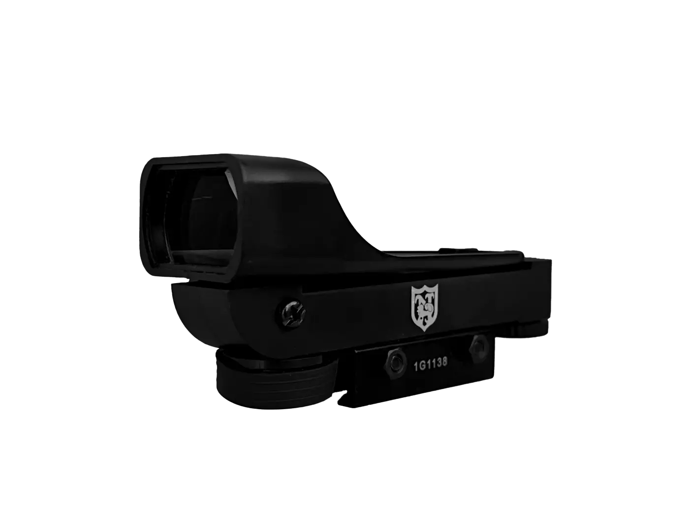 Possui retículo 30/30 e ajuste manual nas torres lateral e superior, com tampas de proteção que auxiliam em ambientes de maior luminosidade.