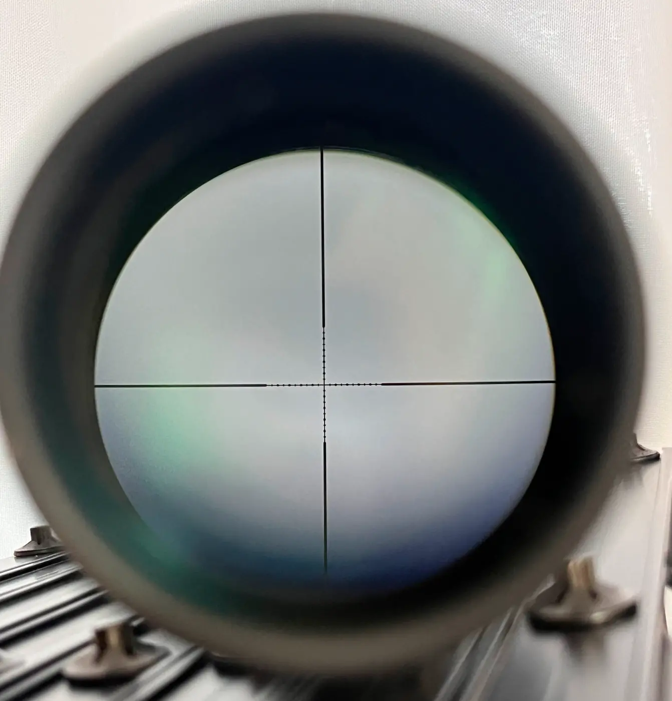 Retículo HMD: O retículo HMD (Half Mil-Dot) é um retículo especial para compensação de disparo a longas distâncias. Além disso o modelo "half", mais fino, não atrapalha a visada em alvos pequenos.