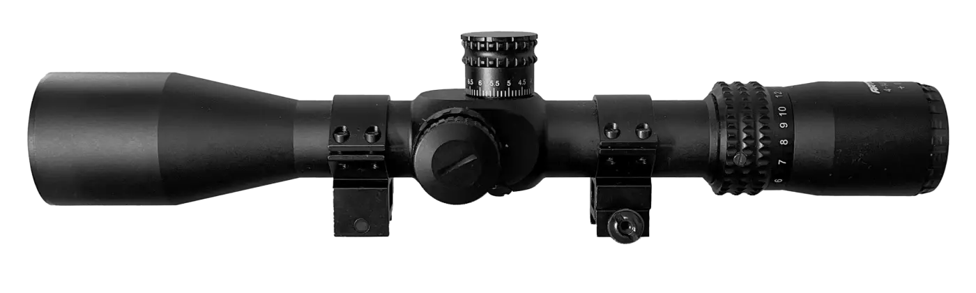 Possui ajuste de paralaxe lateral, retículo SF/HMD gravado na lente e lentes Microlux ETE GEN III multi-revestidas, que oferecem imagens nítidas mesmo em baixa luz.