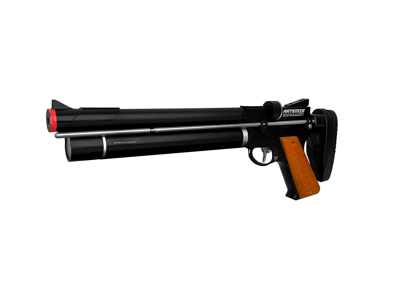 Pistola PCP Artemis PP750 StockerArtemis é uma fabricante renomada de airguns que já está no mercado há décadas, oferecendo produtos de qualidade e com ótimo custo/benefício e que exporta seus produtos para países de todo mundo, com prevalência para os europeus, onde há um nível de exigência mais elevado.