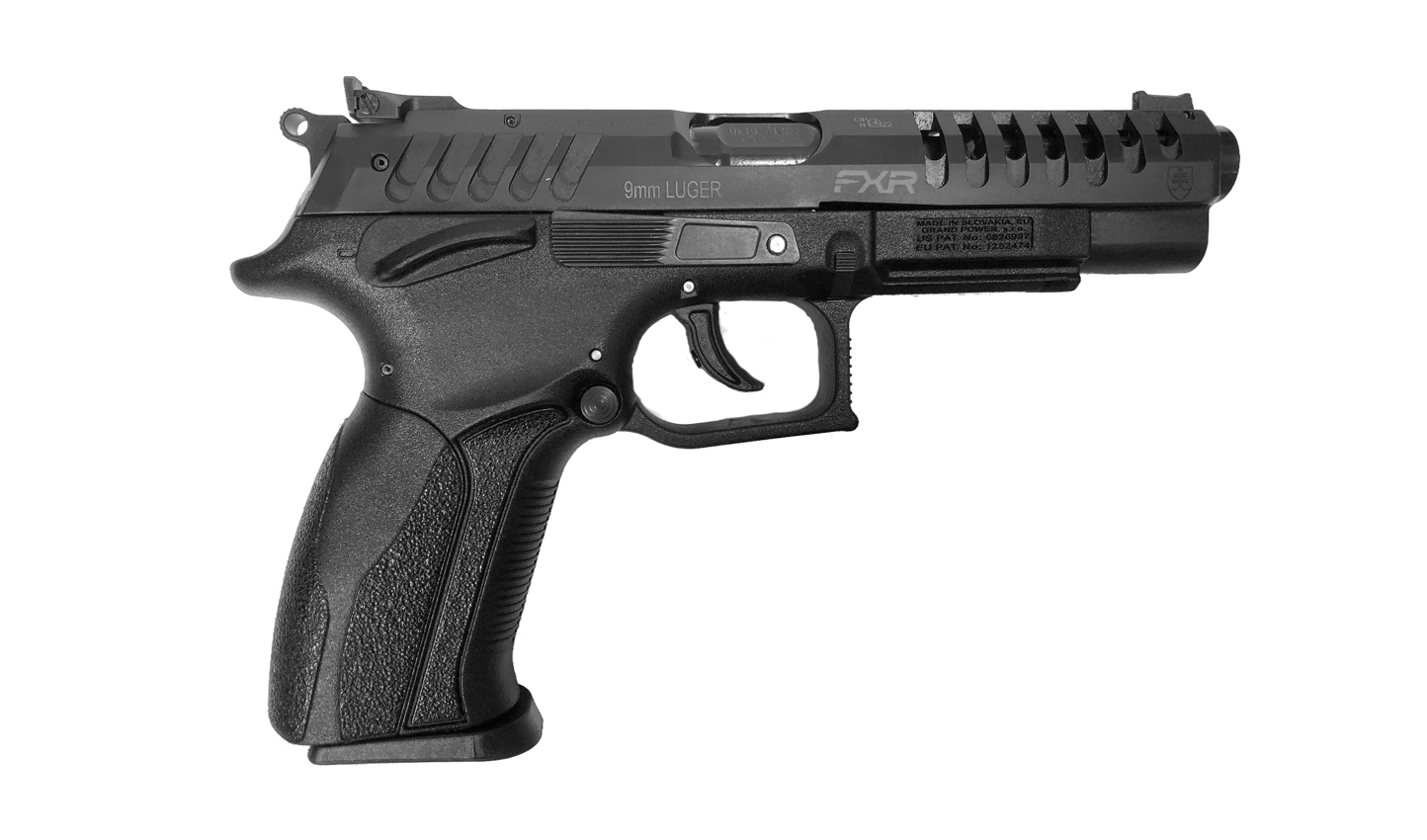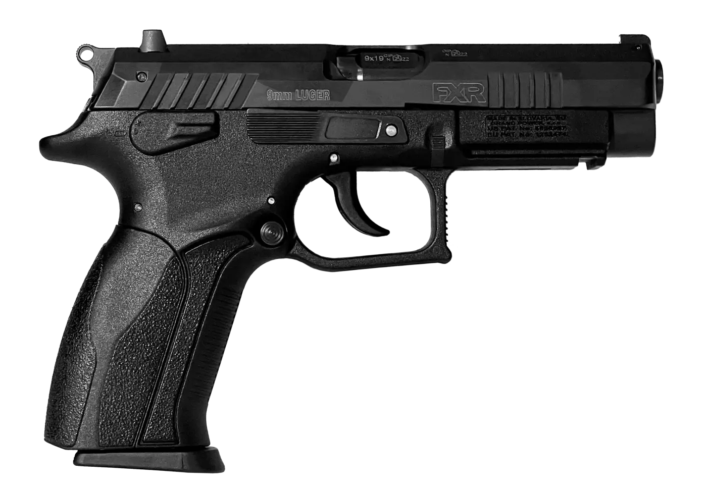 Oferece excelente empunhadura com três backstraps intercambiáveis, trava de gatilho manual e retém de carregador ambidestro.